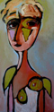 Painting and exhibiting for over 30 years, Joel Carpenter, specializes in painting the female form.He uses muted color, linear and stylized technique in oils. The figures are portrayed in a child-like manner.Some of the large, dark eyed figures project a serene innocence while others are darker in mood