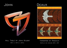Noted in Artscape Magazine as one of “Colorado’s top art spaces”, the John Deaux art gallery is located on the upper floor of the historic Turf Exchange building, an 1881 casino, dance hall and brothel. The sky lit, loft gallery showcases a large selection of original art by many of the region’s leading artists. The gallery was founded in 1981 near Pueblo’s Broadway Street as the OFF Broadway Art Gallery. When current proprietors John Wilbar and Radeaux, moved the gallery to the Union Avenue Historic District in 1989, they changed the name of the gallery to a combination of their names. John Wilbar currently specializes in design oriented, award winning, painted furniture and sculpture. Radeaux, whose studio is in the gallery, paints birds and other life sized fauna with patterns and colors in a unique style that is becoming widely recognized and collected. The gallery exhibits a sizable selection of paintings by renowned master colorists John L. and Dorothy Mendoza. Master craftsman Joseph Kronwitter displays elegant wood inlay furniture and sculpture. Barbara Yaeger exhibits contemporary botanical watercolors and her daughter Ann Yaeger shows a range of exciting paintings that are studies of light, shadow and reflection. Meghan Wilbar, John’s daughter, is becoming known for her colorful, abstract expressionist oil paintings. Marilyn Leuszler, who studied in Japan for many years, paints traditional sumi-e of contemporary, local and western subject matter. Carolyn Hoyle exhibits large landscapes in oil and Edward R. Sajbel paints loose, almost abstract landscapes in watercolor. Renowned cinematographer & photographer John H. Johnson shows his mastery of the archival silverprint. The spacious gallery has many examples of all these artists’ works.