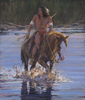 Trained as an illustrator, Nathan Solano has been painting full time since 1987. Initially painting in acrylic on canvas, Solano now paints exclusively with oils. Known for his use of light and shadow, Solano paints landscapes, western cattle drives, cowboys and native American scenes with historic accuracy. His work has been published widely in western and southwestern magazines.